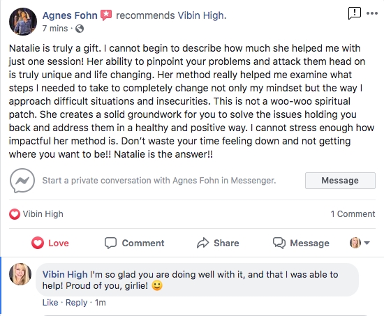 To have somebody that actually can tell you what you needed to hear in a very compassionate loving way -- it's life changing. It's a community of love and that's what Natalie is. She's just a big ball of love. Natalie has this gift of knowing how to get you to the next level, and then the next level, and then the next level.